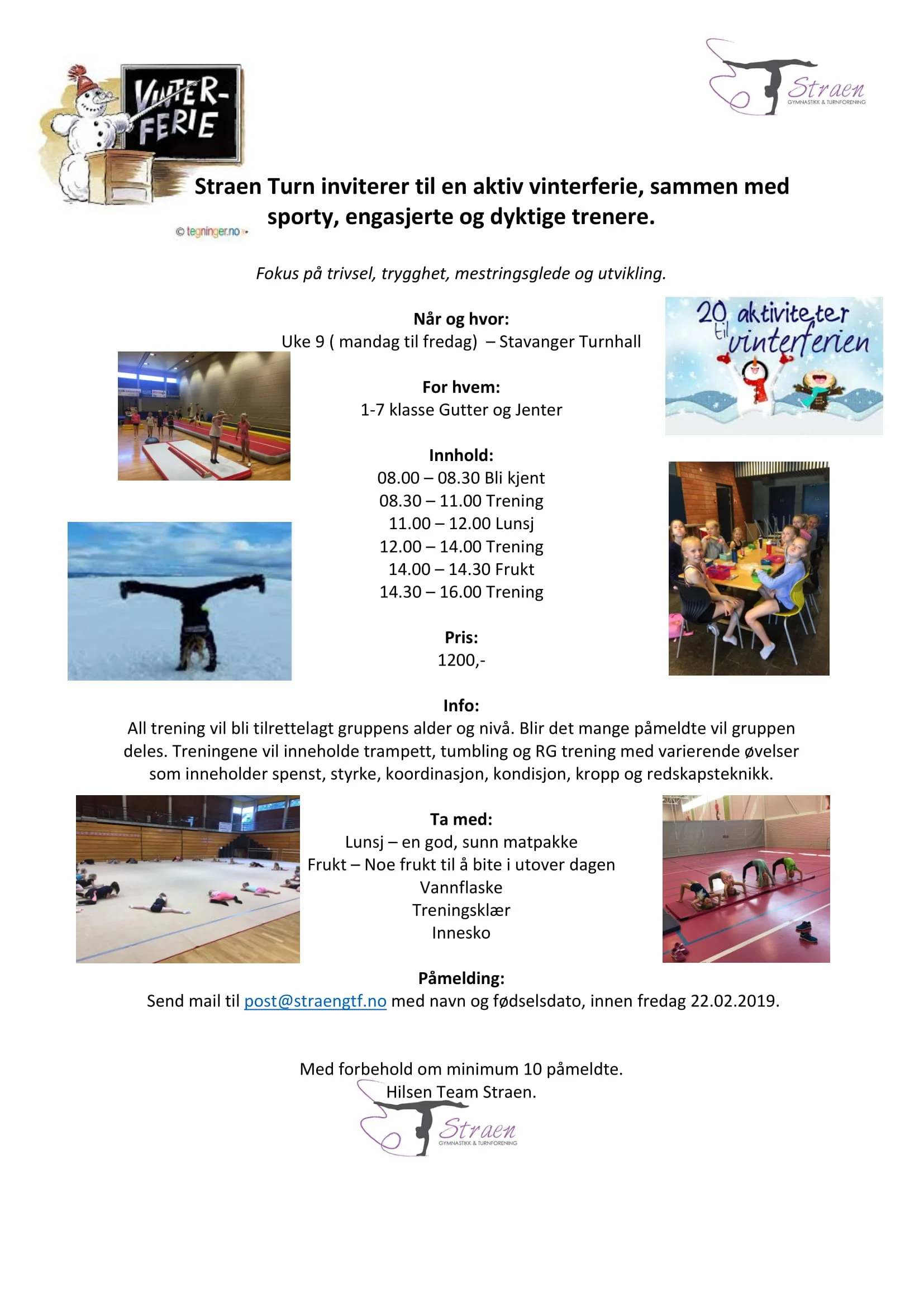 Vintercamp 2019 Straen Turn inviterer til en aktiv vinterferie, sammen med sporty, engasjerte og dyktige trenere. Straen GTFFebruary 18, 2019 Facebook0 LinkedIn0 0 Likes